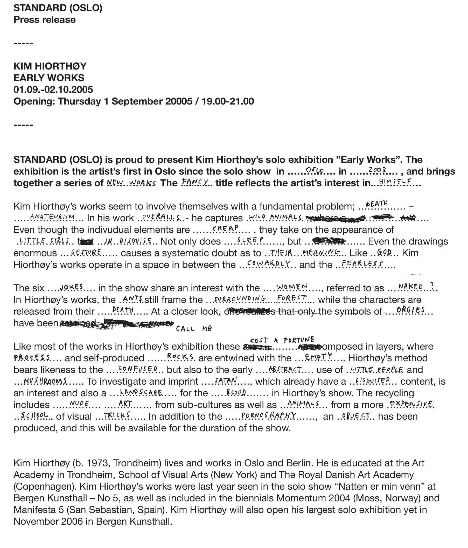 KIM HIORTHØY: "Early Works"